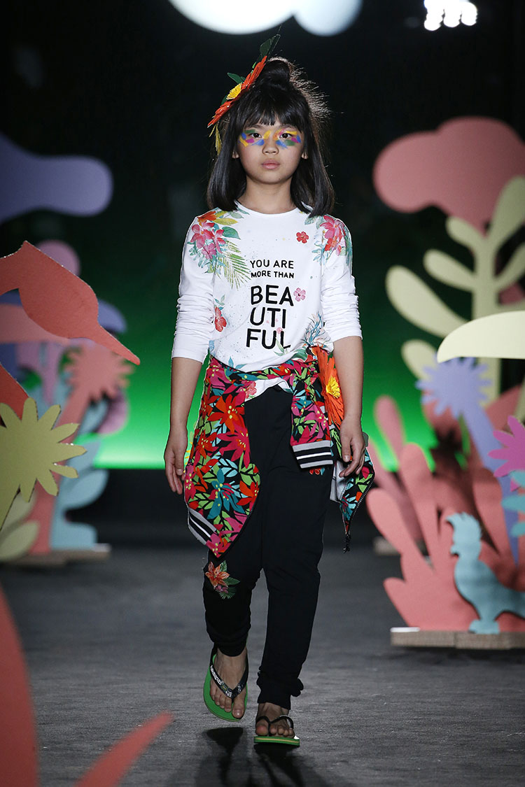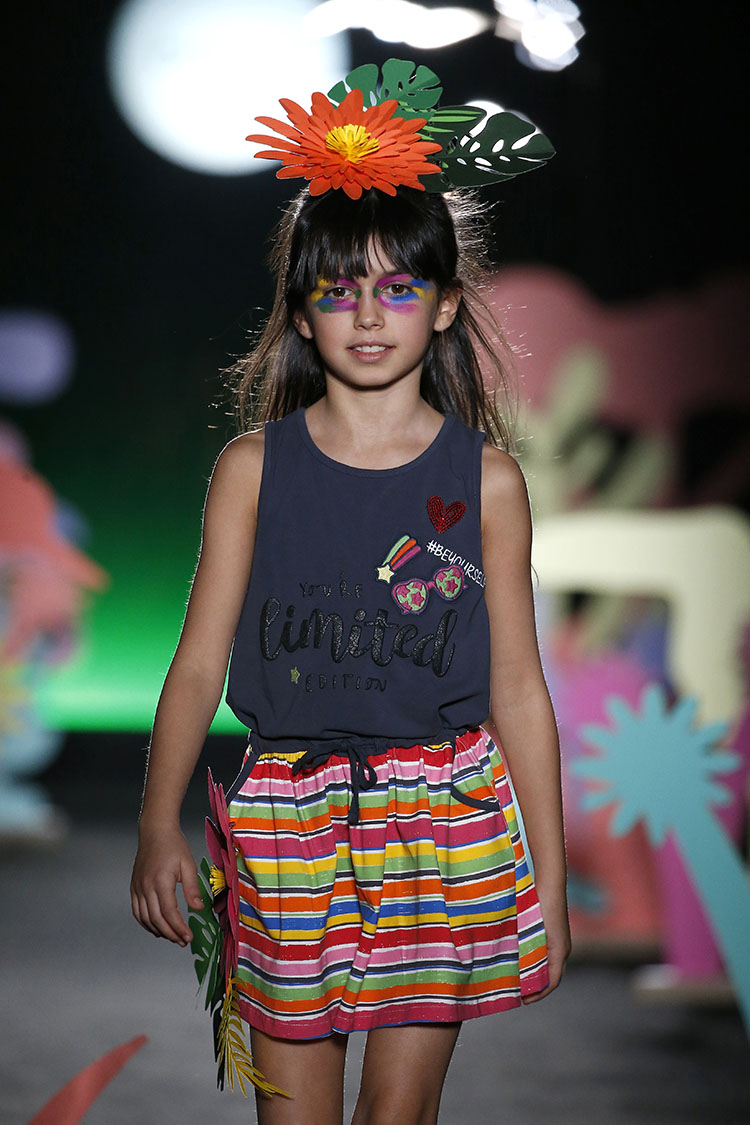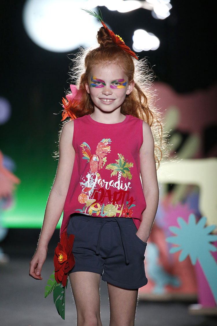 La proxima temporada primavera-verano 2018, Boboli se inspira en la jungla tropical. Destacan diseños alegres y energicos que invitan a la aventura. Prendas cómodas, casuales y deportivas para cualquier momento del dia. Camisetas, chaquetas bomber, pantalones y vestidos en colores vivos como fucsias, naranjas vibrantes, amarillos lima, azules oceánicos y verdes expresivos, sin olvidar los blancos y negros como base para estampados tropicales, florales, con flamencos, dibujos de animales y mensajes divertidos. La nota de diversión y exhuberancia la ponen las flores colocadas a modo de accesorio en pantalones, camisetas y cabello.