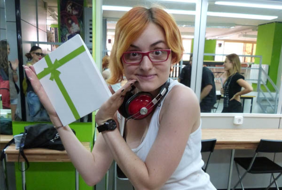 Mari Caballero alumna de primero de caracterización, ha recibido un premio por haber ganado el concurso de disfraces de la escuela que se realizó en carnaval 2012.